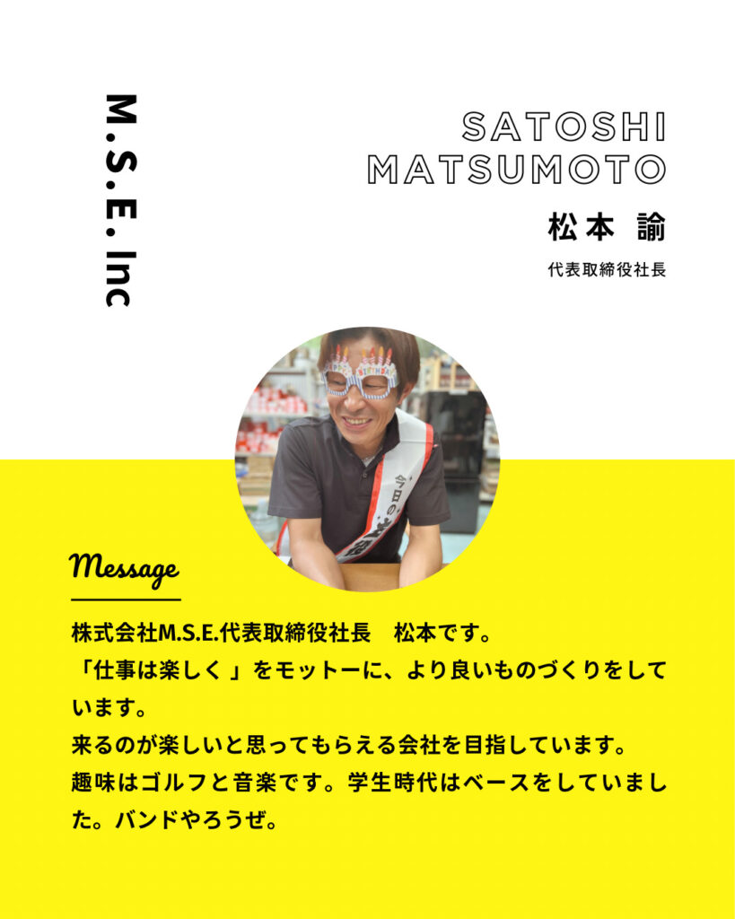改めまして自己紹介 社長編 2025.10.08 ブログ ゴルフ(ゲームも)と、ベースやギターを弾くのがブームです。 最近は、娘のピアノでジブリ系の曲を練習中です。 好きな食べ物は 焼肉、カレー、うどん。 かに座のO型です。 ゴルフコンペ 前の記事 法人化して4年 次の記事