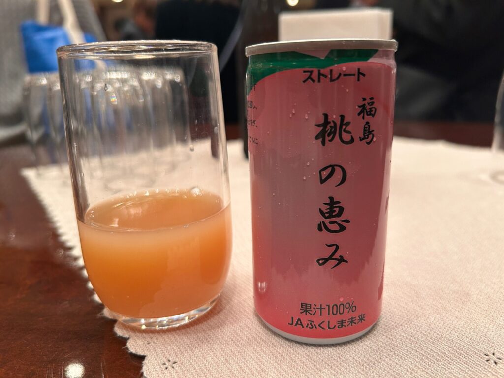福島県産の桃ジュースも、我ら岡山の桃と同じくらいおいしい。