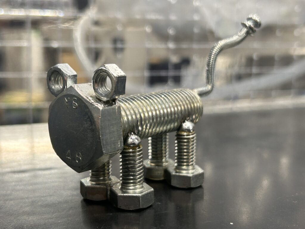 ボルトやナットをはんだで接着しています。カエルにも犬にも見えますが、くまだそうです。