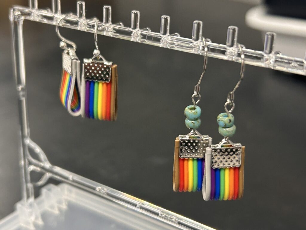 電線を使ったアクセサリーもあります。フラットケーブルのカラフルピアスや