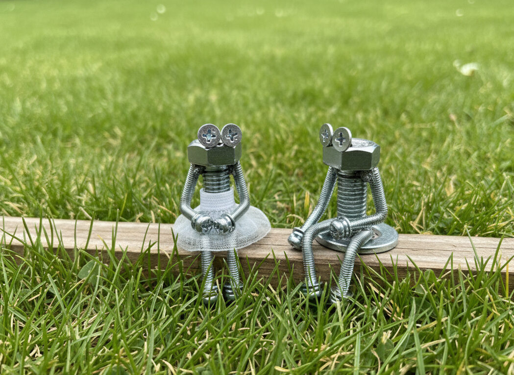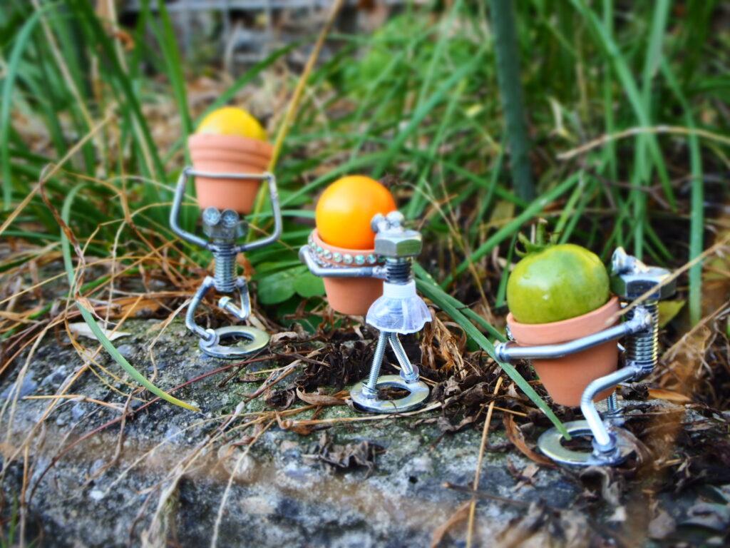 この度、女性スタッフたちが制御盤製造で使うボルトやナット、電線などの部品を使いユニークな人形アートやアクセサリーを創作しました。