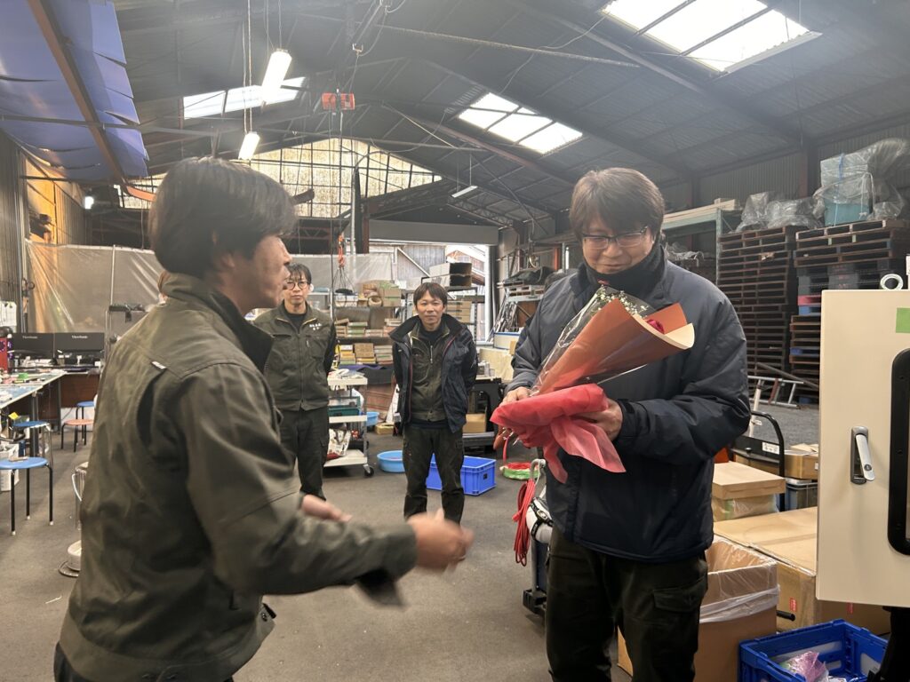 仕事始め 2026.01.05 ブログ M.S.E.今日から仕事始めです。みんな元気に揃いました。 今年は3人午年がいます。そして、大先生(おおぜんせい)が今年還暦です。 みんなでお祝いをしました。 一輪の赤い薔薇と、大先生ロンT 喜んでくれてよかったです。 今年もM.S.E.は、元気に楽しく頑張っていきます。 よろしくお願いいたします。 あけましておめでとうございます 前の記事 今月のめあて 次の記事