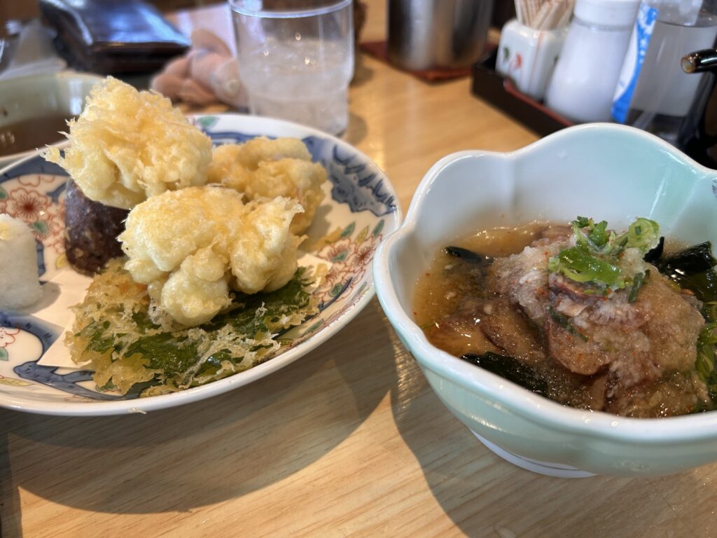 社長は白子の天ぷらを食べていました。一つもらいましたが、一つしかもらわなかった事を後悔しました。どの料理もとても美味しくお腹いっぱい食べました。