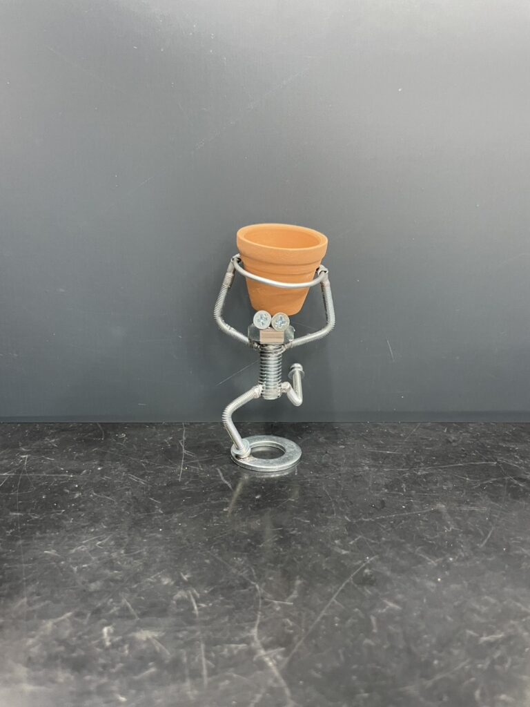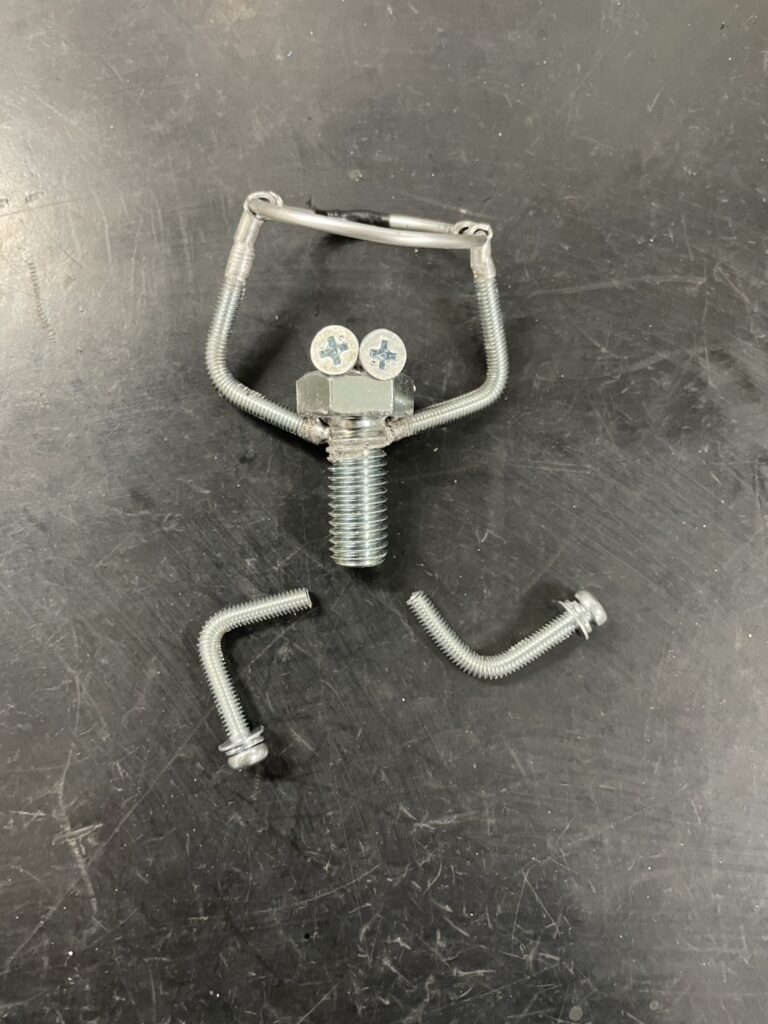 3 Y端子を輪っかに噛ませます。この輪っかは植木鉢をいれる物です。腕をはんだ付けします。