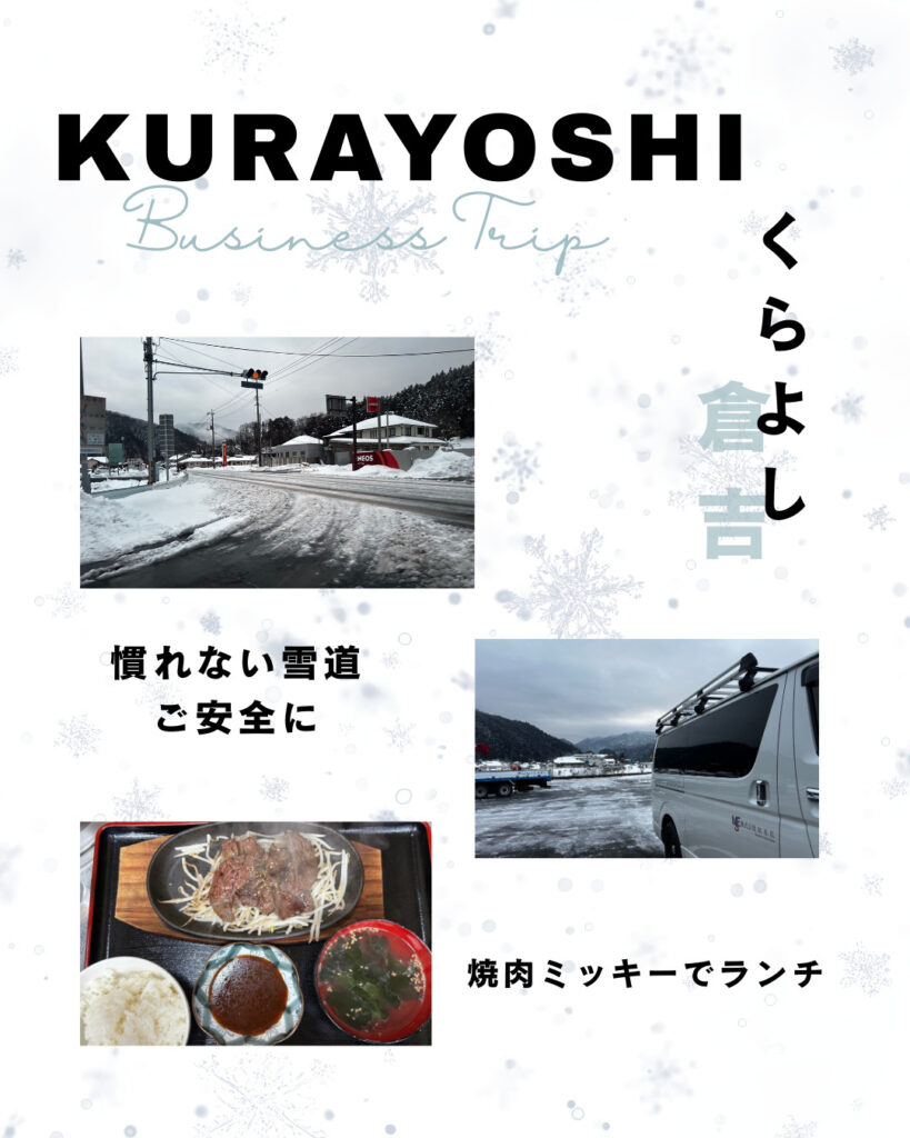 雪国へ出張 2026.02.10 ブログ 社長、工場長、Mくんは倉吉へ出張です。 晴れの国おかやま、ほぼ温室育ちの岡山県民 雪道には少々不安がありますね。 他県に行った時は、現地の美味しいものを食べるのが楽しいですよね。 最近の作業風景 前の記事 コーイチさんの仕上げ 次の記事