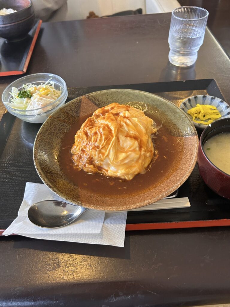 オムライスは、優しくて懐かしい味がしました。ご飯もしっかり入っていて、ソースもとてもおいしかったです。