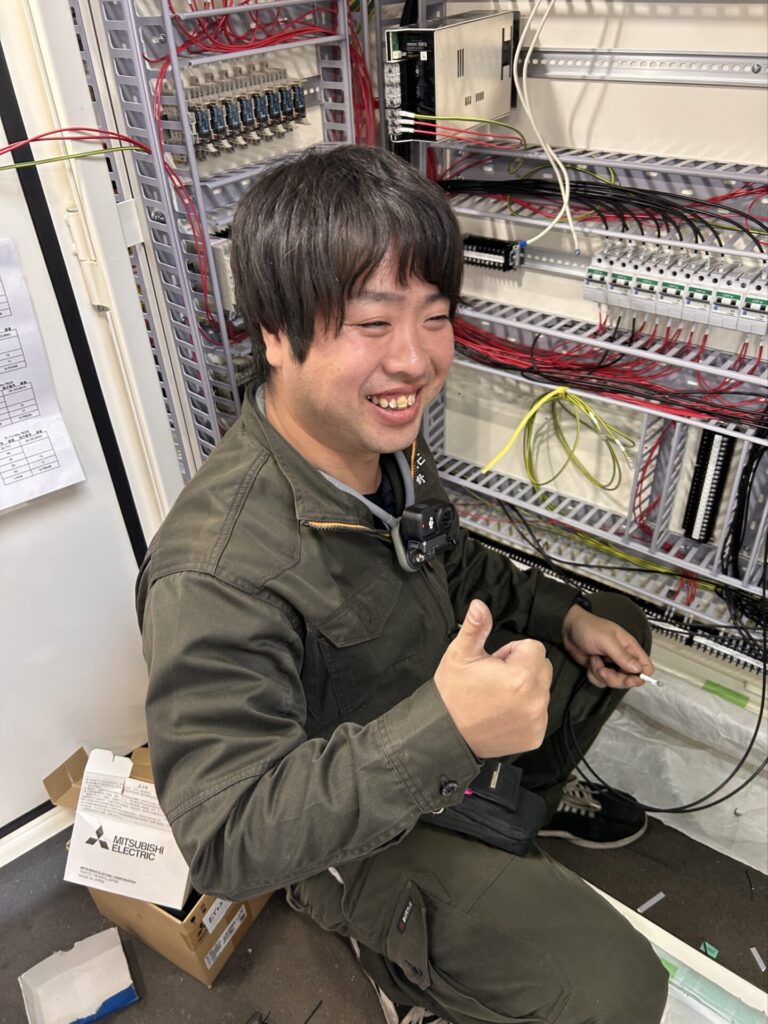 手元の映像を撮るために胸もにカメラを下げて作業していた彼もニコニコしています。撮っているのがわかると嬉しくなるのでしょうか?うちの社員はカメラを向けるとすぐ笑います。そして写りたがります。