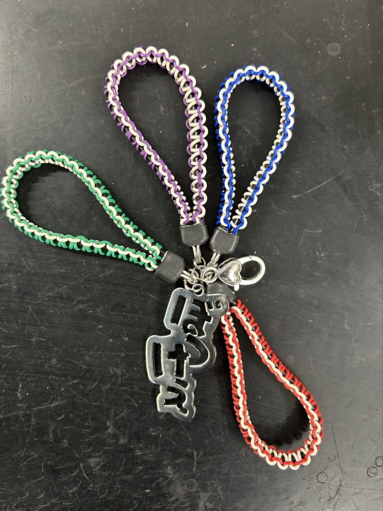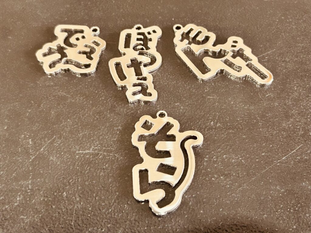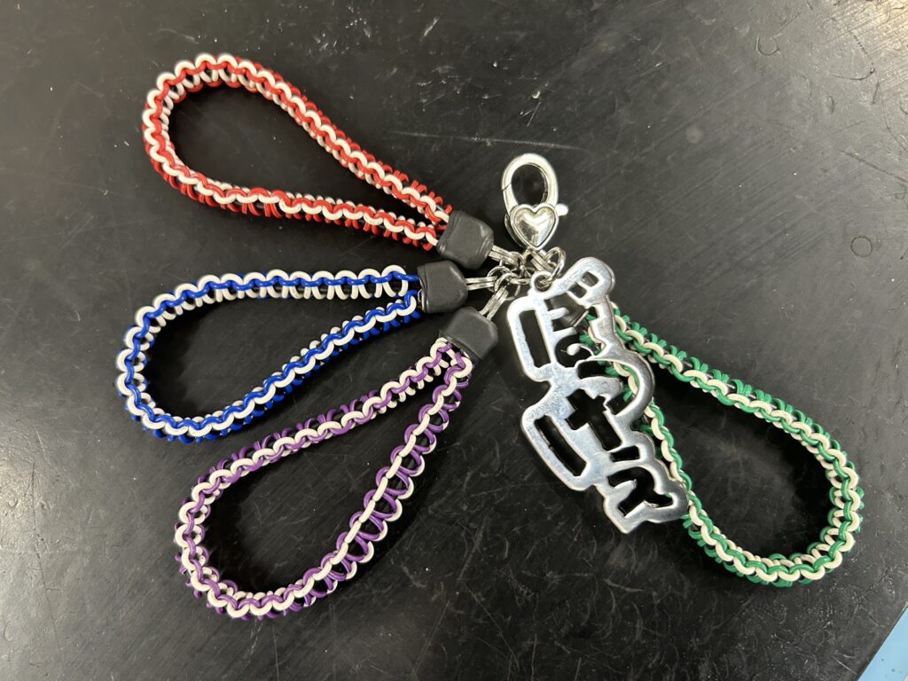 板金加工でも端材が出るので、それで文字を抜いてくれました。弊社のストラップも、パステルカラーは新品ですが芯線は100%端材です。